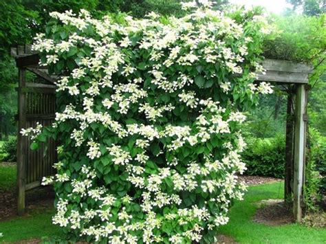 Climbing hydrangea A full-grown climbing hydrangea in bloom can take your breath away. This big vine produces large clusters of white flowers held against rich, dark green foliage. Climbing hydrangeas grow by producing aerial roots that grow into walls, fences, or even up the side of a large tree. Read more…